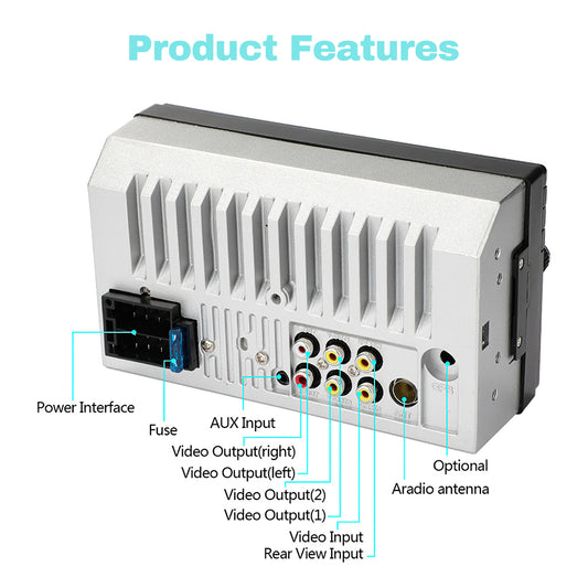 Double Din Car Stereo 7” Touch Screen Car Radio with Bluetooth Backup Camera FM Radio Receiver USB AUX Auto radio TF Card Input Audio Video MP5 MP4 MP3 Player Car Multimedia Player Support Mirror Link +Rear Camera